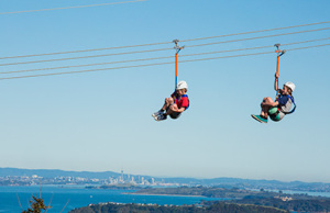 EcoZip Adventures offers state-of-the-art flying fox ziplines and an eco-immersive forest walk on breathtaking Waiheke Island, for nature lovers of all ages. Upon arrival and welcome at our visitor centre, you will be checked-in, geared up, and readied for one of Auckland's most eco-friendly activities! Three 200m dual flying fox ziplines will fly you smoothly side-by-side with a partner, friend or relative down into a stunning tract of original and regenerating native bush (forest). It's a scenic interpretive walk back to base, where you'll learn about local flora and fauna and the conservation of this spectacular natural environment. You'll enjoy the full Waiheke experience with a complimentary pick up from the island ferry and a range of drop-off locations afterward.
